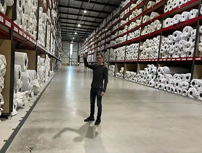 Unsere Premium-Kunstrasen lagern wir in unserem 5.000 m² großen Hochverfügbarkeitslager.